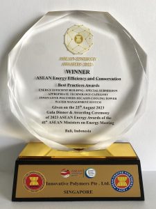 We are delighted to announce that “Innovative Polymers DeCaIon Cooling Tower Water Management System“ has been awarded as the Winner of the Energy Efficient Building – Special Submission – Appropriate Technology of the ASEAN Energy Efficiency and Conservation Best Practices Awards 2023. We are honored to receive this award on the Awarding Ceremony held at Bali, Indonesia on 25 August 2023 in conjunction with 41st ASEAN Ministers on Energy Meeting (AMEM) and ASEAN Energy Business Forum (AEBF) 2023. This award serves as a remarkable milestone in our journey.